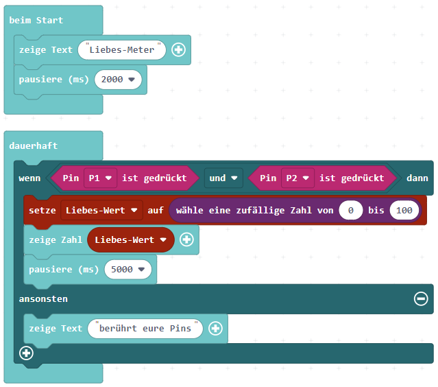 Übung 3: Beschreibe möglichst genau, was der dargestellte Code aus MakeCode macht. Gib dabei auch die grundlegende Idee von diesem Code kurz an.