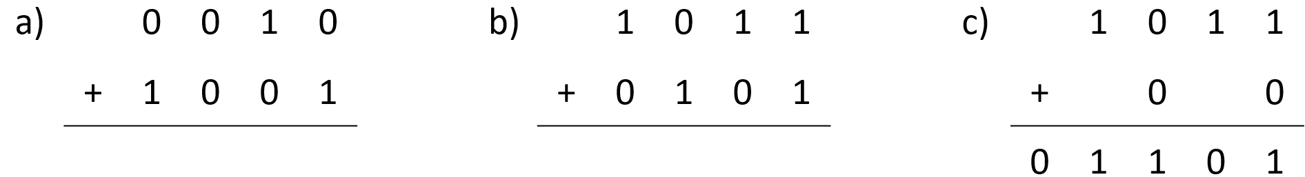 Vervollständige die Addtion von Binärzahlen.
