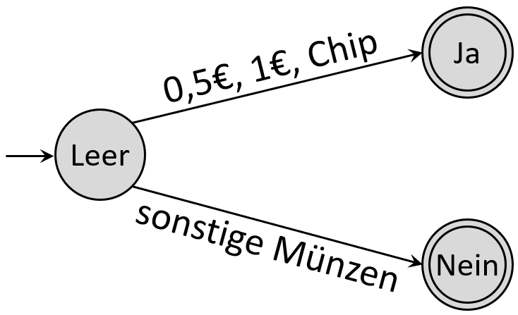Beschreibe eine reale Anwendungsmöglichkeit für den dargestellten Automaten.