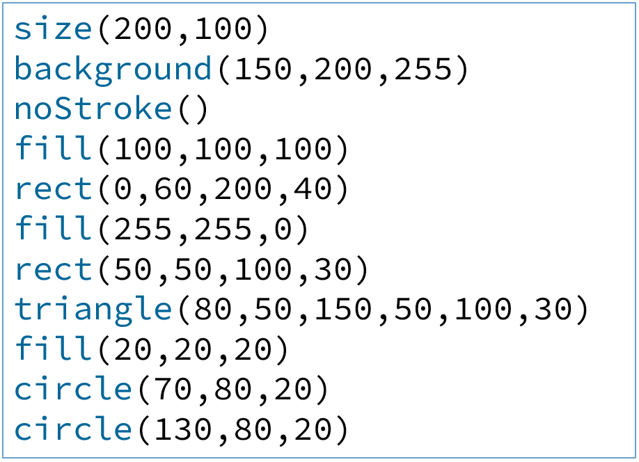 | triangle(x1, y1, x2, y2, x3, y3) | ein Dreieck mit den Ecken (x1, y1), (x2, y2) und (x3, y3) |